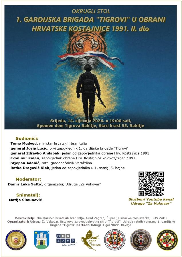 14. 1. 2026. godine održan je okrugli stol „1. gardijska brigada ‘Tigrovi’ u obrani Hrvatske Kostajnice 1991. – drugi dio“, u organizaciji Udruge za Vukovar, uz domaćinstvo Ustanove za sveobuhvatnu skrb „Tigrovi“ i partnerstvo Udruge Tigar 90/91. Moderator okruglog stola bio je Damir Luka Saftić, a sudjelovali su istaknuti ratni zapovjednici i sudionici obrane: generali Josip Lucić, Zdravko Andabak i Stjepan Adanić, te Zvonimir Kalan i Ratko Dragović Klek.